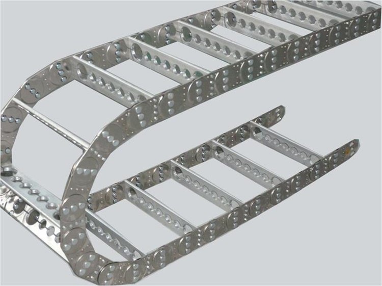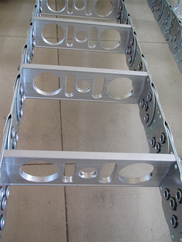 TL系列鋼鋁拖鏈主要由鏈板(鍍鉻的優(yōu)質(zhì)不銹鋼),支撐板(擠壓鋁合金)和銷(xiāo)軸(合金)等組成。