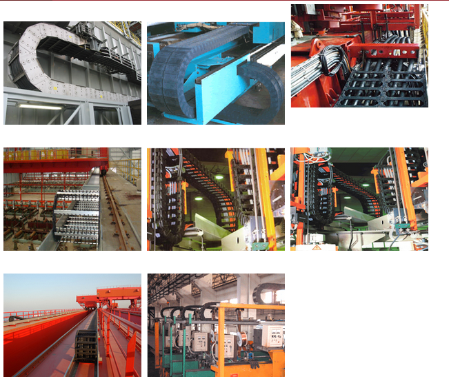 電纜拖鏈主要應用于:工業電子系統,自動生成線,倉儲設備,機器人,消防系統,起重機,數控機床和冶金工業.